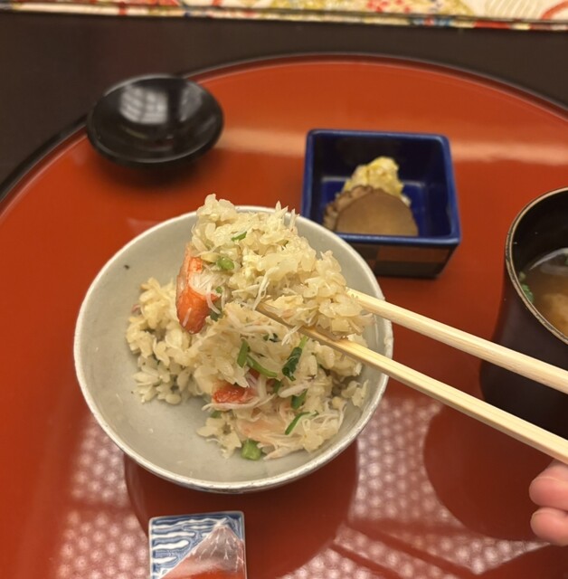 濃い目に作られたカラスミと飯蒸、赤貝・鰆・鮪のお刺身、海鮮雪見鍋とどれも筆舌を尽くしがたい、、