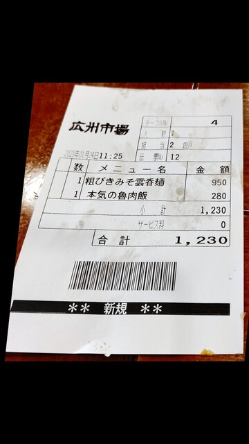 昼時は並びがあるのを見ていたので、11時30分過ぎに行くと地下のテーブル席に案内して頂けた、ありがたい。粗びき味噌雲呑麺+本気の魯肉飯をオーダー、約10分で到着です。