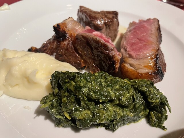 この、完璧なステーキ体験を、さらに、高みへと引き上げるのが、「マッシュポテト」と「ブロッコリーのボイル」という、最強の脇役たちだ。 マッシュポテトは、信じられないほど、クリーミーで、滑らか。 ブロッコリーも、食感を残した、完璧な火入れ。 これらの、シンプルながら、一切の妥協がない付け合わせが、濃厚なステーキの脂を、優しく受け止め、我々の箸を、止まらなくさせる。