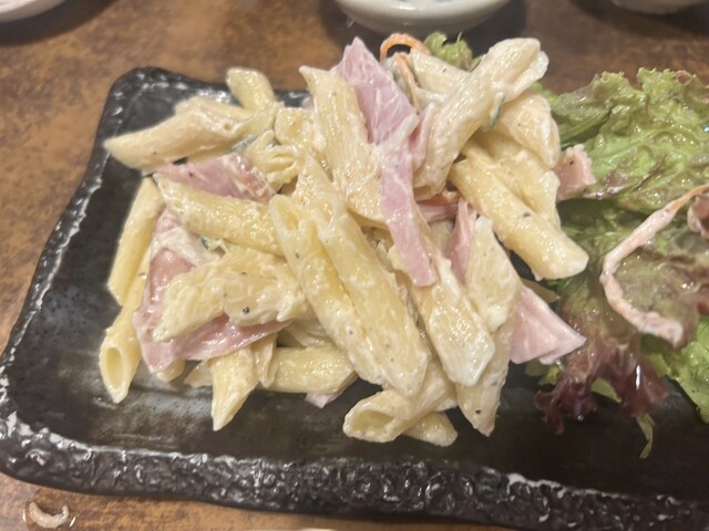 お通しはマカロニサラダ。
