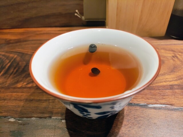 最初に黒豆ほうじ茶が提供
