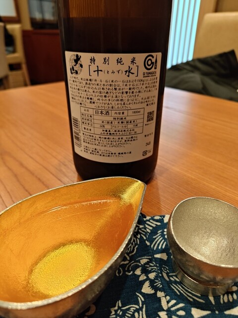 八寸から始まり、タコ炭焼き・つぶ貝・胡麻豆腐柚子味噌。これだけで既に日本酒が欲しくなる完成度。店員さんに伺い、山形の「十水」を出していただきました。お猪口2つ用意されましたが、もちろん1人で飲み干し。八寸と日本酒の時点で極楽気分です。