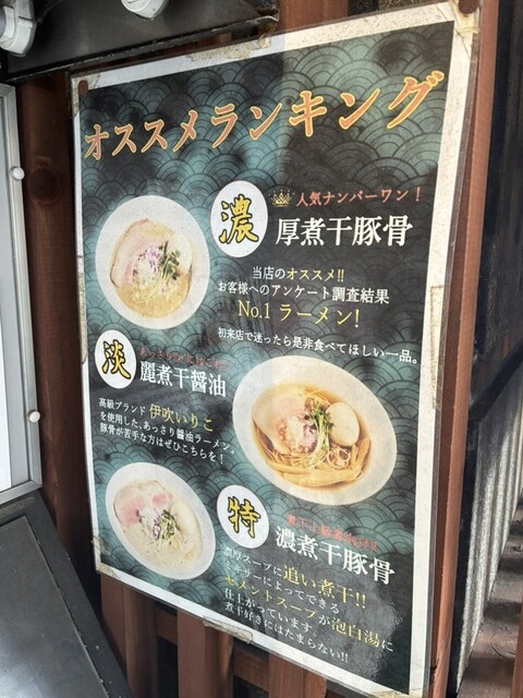 旅行前から色々と調べてあれもこれも美味しそうで気になりましたが濃厚煮干豚骨が1番気になった伊乃心さんに決めました☆