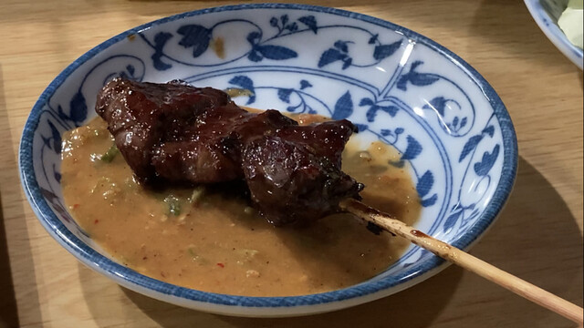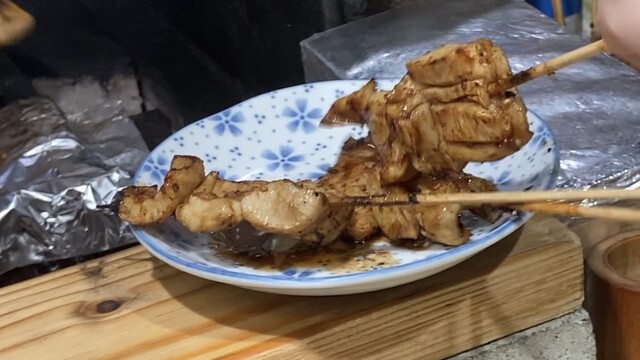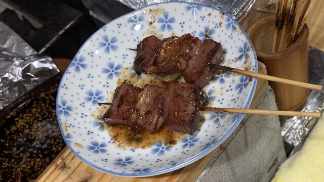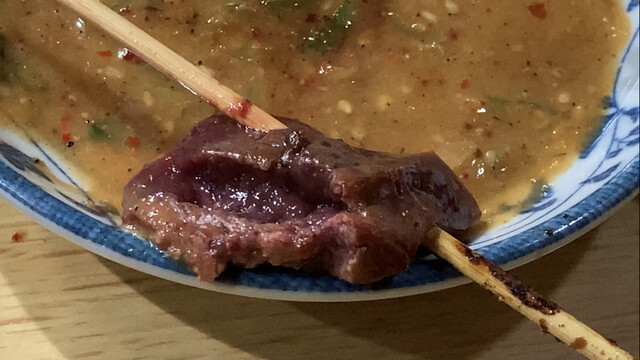 ほんとコチラ「松よし」さんの牛ホルモン串焼きは…