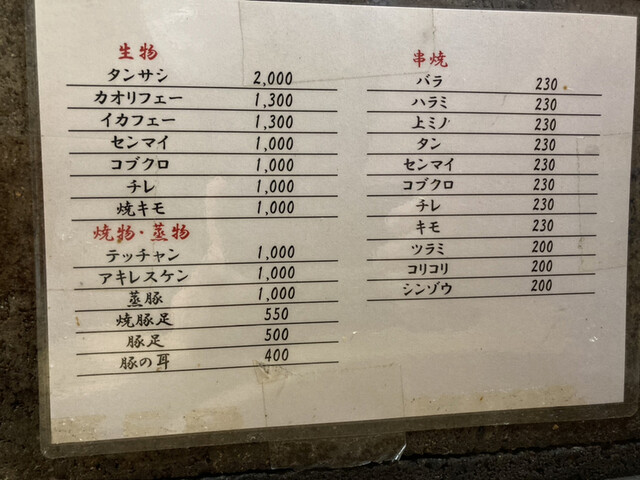 そもそも安価な豚ホルモンとは比べるまでもなく価格差が出ますし。ただ昨今の物価高騰の中で牛ホルモンといえども生物・焼物あたりの値上げ幅が大きいのも事実… (一皿系の1,000円はチョイ割高感あるかな)