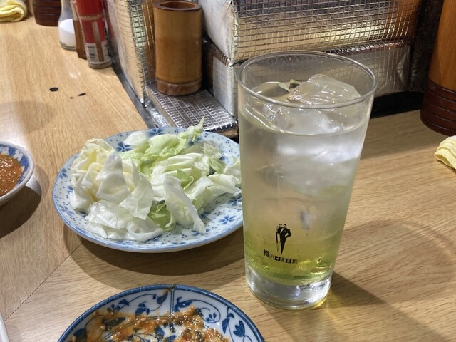 名物「(生搾り)レモン酎ハイ」と「キャベツ(お通しはサービス)」