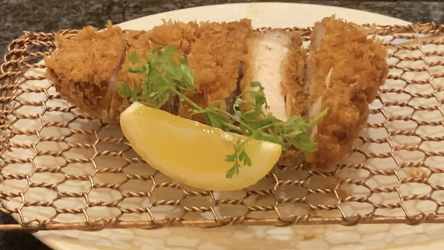 外側はカラッとサックリ・内側しっとり柔らか♡丁寧にスジも処理され、軽くまとった小麦粉や粗めパン粉から揚げられ出来上がった衣は抜群の食感と歯触り♪ 見た目として…お肉の内側&外側+衣の3層からなる色鮮やかな三色のコントラストが美しい芸術的な1枚! 一噛すれば柔らかい噛み応えから,豚肉の旨みが一気に口中で弾けて広がるw 閉じ込められてた肉汁も素晴し