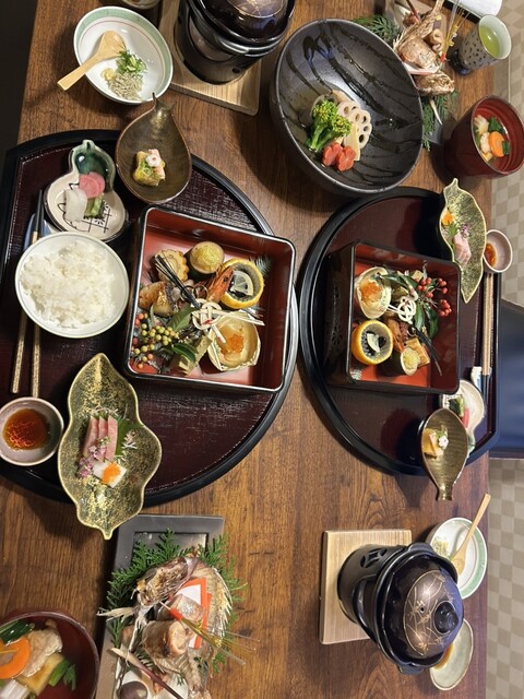 夕食は、鮑から始まり、伊勢海老、すき焼き