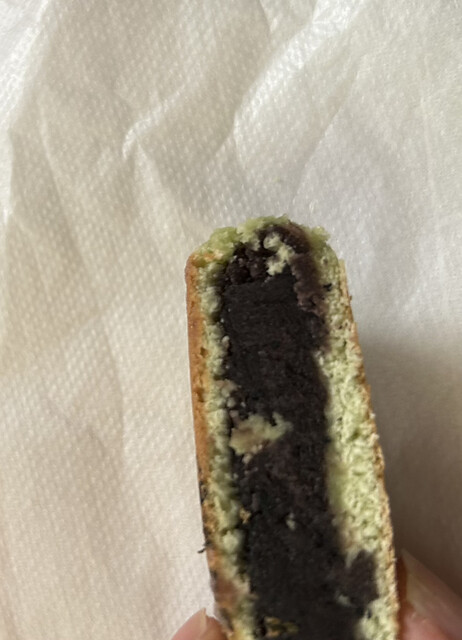 抹茶風味の皮は淡いグリーンで、お茶の香り。