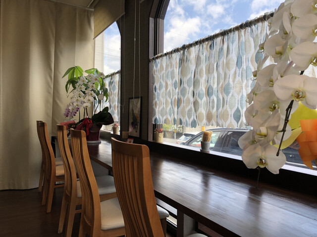 ●店内は、日の光が差し込み、ベンジャミン•ガジュマル•ドライフラワーなど様々な植物があり、リラックスできる空間です。