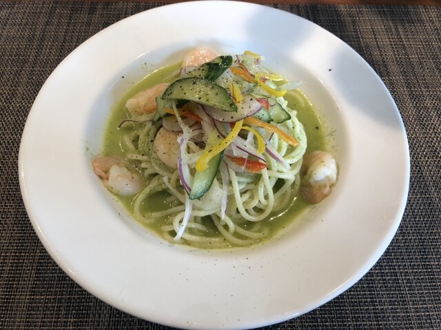 【海老ときゅうりソースの冷製パスタ 1400円】