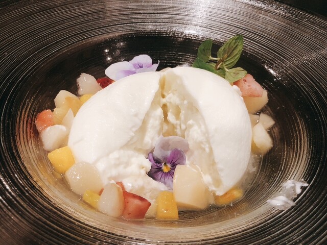 最初に出てくるお通しの花びらのようにふわふわと削って食べるチーズ:テット•デ•モワンヌが最高に美味しかったです✨✨✨