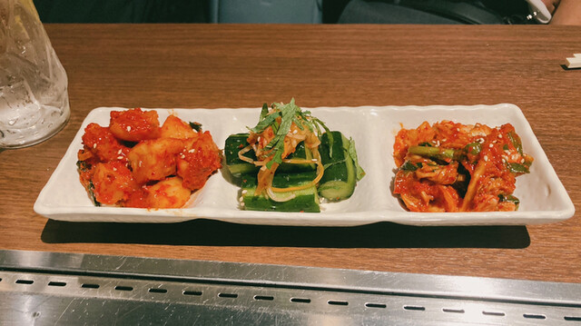 チヂミの皮はパリパリで中はしっとり。すごいこの歯応え最高。マヨが主張しすぎだけど、ピザみたいかもなぁ。あとキムチ盛合せを注文、中のカクテキが少し甘めで好き嫌いが別れた。全員一致のおかわりしたい→キムチでした。余ったらなんと、生肉もお持ち帰り出来ました。キムチも二つ位買えば良かったわ。