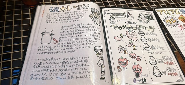 インドでもスープでもない日本のカレーで人気なお店に連れて行って貰った。北円山店は席数多くて入り口も可愛い。2階からなので階段あり。笑顔で接客して下さるお姉様も素敵。デトックスのお水は席に固定スタンバイ、呼ぶ時は鈴️を鳴らす。置物やポスター、いろんな箇所にこだわりがあり凝ってるなぁ。お茶目なオーナーさんと思った。ここのカレーは、辛さもご飯の量も選べてカスタマイズ出来るじゃん。メニューの挿し絵もおもろい。辛さは5にしてみたよ、まぁまぁ辛いの好きな人には丁度よいかも。汗出るほどじゃないけど水ぐびぐび飲んじゃうよね。お水くださーい!って言わずに済むからその点も高評価。金曜日夜19時過ぎ、結構空いてた。車じゃないと行きにくいのかな、本店は駐車場あるけど、こちらは有料パーキングしないといけない。でもその価値ありだ。自分じゃ絶対ここまで作れないお味でカレーの奥深さを感じる。私は煮込み浜カレー辛さ5、ご飯は高。ご飯少なそうだけど結構あるよ!と言われ、私の心の中を読んだのか?と思う一言だった(≧∀≦)確かにお腹いっぱいになってきたよ。で煮込み浜カレーと普通の浜カレーがある。説明書き読んでもらうとわかるけど、飾り付けは浜カレーが見栄え良し。でも店主様は煮込みがオススメ自信ありみたい。見た目より中身ではないだろーかって。いやぁ私もそう思うわ〜。希望として見た目はアンハサウェイ、中身は阿佐ヶ谷姉妹がいいなぁ。話がずれた。