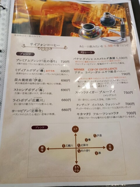 サイフォンは味にブレが出ないので、安定の美味しさです。ちょい苦めのブレンドがチーズケーキとよく合います。