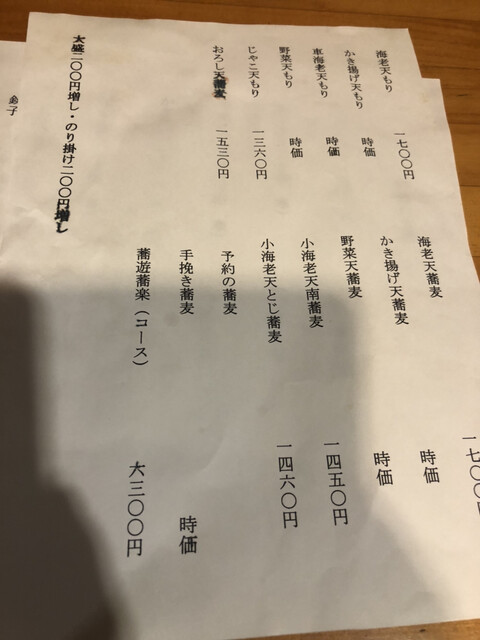 ご店主より二枚の品書きが渡されて、更にもう一枚は本日の時価料金表。