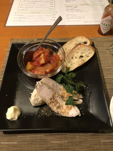 ラタトゥイユ、砂肝のコンフィ、ポテトサラダ(スモーク) ゴルゴンゾーラのせ。