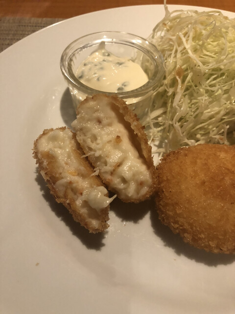 魚フライにはサルサソース?のようなトマト入りのソースをかけて、パクリ。酸味が効いてさっぱりしている。ツナポテトコロッケはソースで。うん、揚げ物は普通のソースがやっぱりうまいな。[3.4]