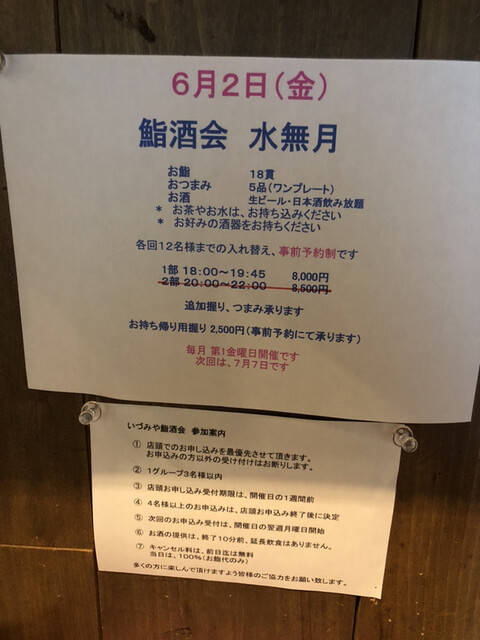 『麹町いづみや』で毎月の第一又は第二の金曜日に開催される【鮨酒会・水無月】に参加した記録。
