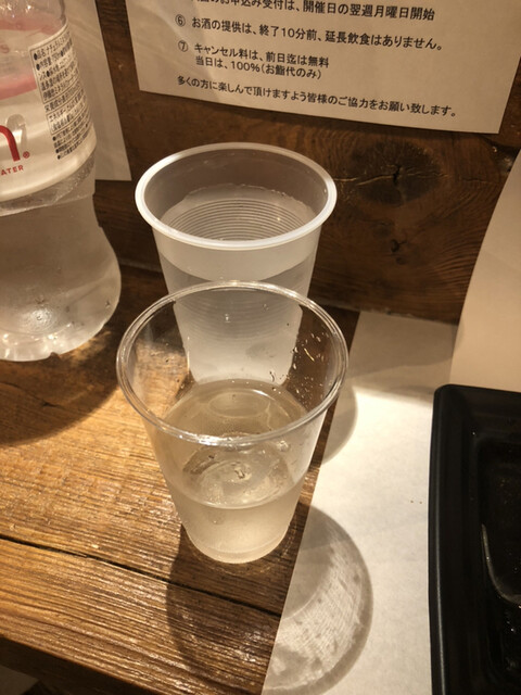 コンビニで明日のお馬さんを応援するため夕刊紙を買い、ウコンの入った肝臓に良さそうなドリンクを飲んで、持ち込みのお水のペットボトルも買って17:50少し過ぎに店へ。