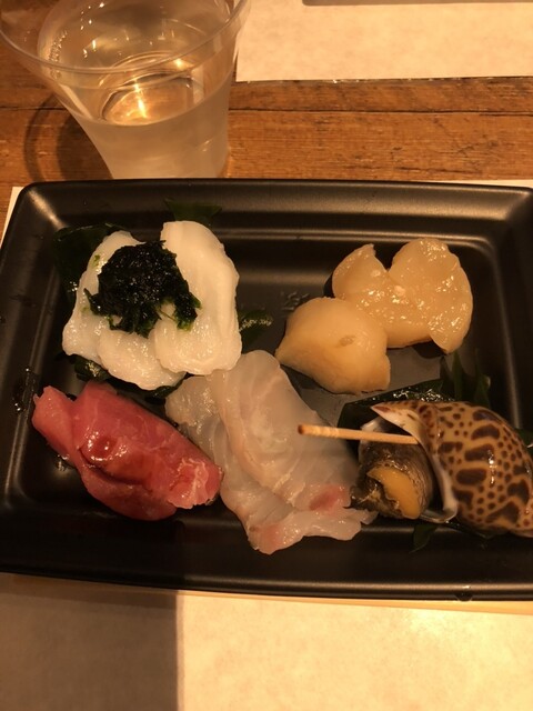 [おつまみ:5品]・鰆燻製・金目鯛味噌漬け・赤海老とボラ酢の物・助子煮つけ・りゅうきゅう