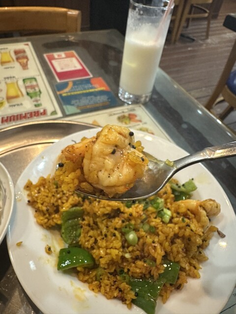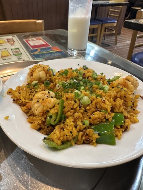 海老ガーリックライス。これがまた。