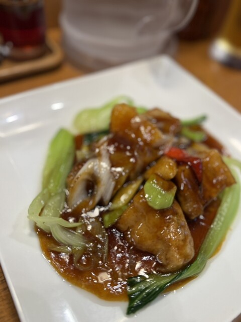 これまで食べた酢豚の中で、間違いなく一番好きな味でした。野菜と豚肉は香ばしく炒められていて、濃いめの餡に程よい酸味が効いていました。豚肉はぷるぷるで口の中でとろけるようでした。