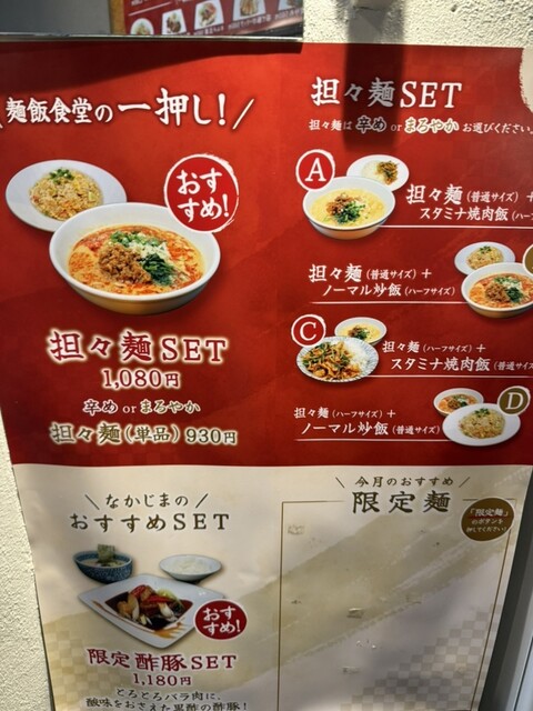 少し列で待っていると担々麺セットのどれにするか聞かれるので、Dをオーダーしました。
