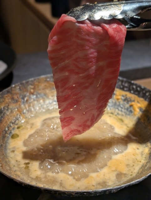 ★贅沢・雲丹鍋 お肉: A5和牛と銘柄豚の豪華しゃぶしゃぶ、このスープでの贅沢しゃぶしゃぶ