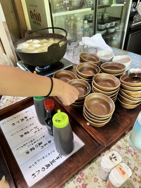 豆腐料理がこれでもかというくらいの種類とボリュームで出てきます。豆腐ハンバーグと湯葉が特においしかった。
