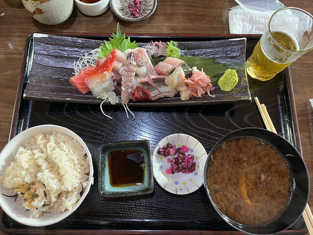 朝の6時からやっている岡崎の美味しい魚の店。新鮮な魚をたっぷり食べられる定食や海鮮丼があります。今回はお刺身盛り合わせ定食の竹コースとアジフライ200円を単品でつけました。ごはんがおかわりできて味付けごはん、酢めし、白米から選べます。コスパも味も映えも最高!またきます!