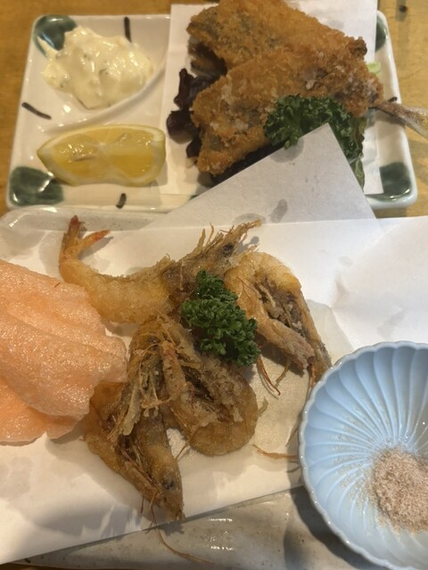 試行錯誤しても魚はなかなか釣れず、恥ずかしながら店員さんに助けを求めました。助けを借りてようやく釣ったお魚さんたちは刺身や唐揚げ、釜飯や味噌汁に。お刺身が新鮮でとても美味しかったです。