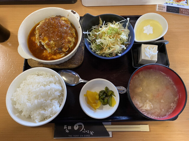 お昼になったので久々に此方に訪問。ランチメニューはいろいろありましたが、煮込みハンバーグにしました。