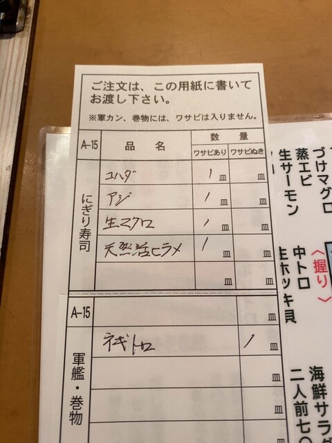 どれも新鮮で美味しく、いくらでも食べられる美味さです!特にデカネタ生鮪は一冊がデカい!折りたたみ頂きましたが、マグロの食べ応え充分でオススメです!