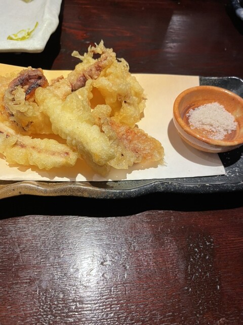 そのままでも少し塩気があって、コリコリした足先もぷりぷりした身も良い食感でした。塩をつけるとスルメイカの甘味が増してより美味しく感じました。