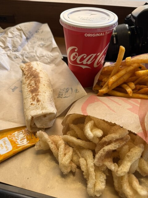 チキンブリトーセット(ポテト、コーラゼロ)+サービスのシナモンスナック