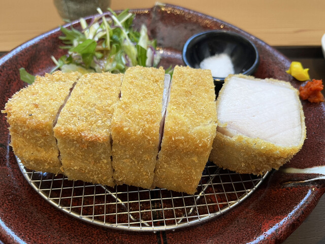 ランチの「日本一分厚い!?とんかつ」定食(1800円)、最高に美味しかったです。噂通りの3cm×5cmの肉厚、お肉も柔らかく、タレがソース、ゆず塩、卵の黄身醤油と工夫されていて、何度も食べたくなる多層...