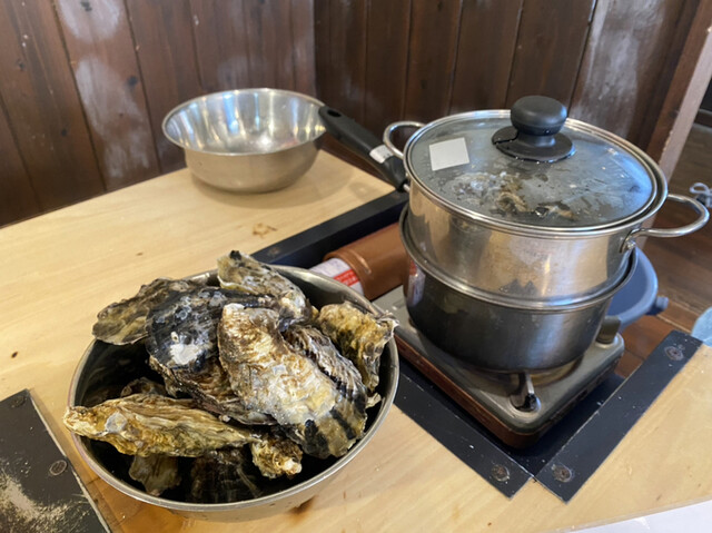 予約客がひっきりなしで車で待ち、予定時間に入店すると、牡蠣が焼ける香ばしい匂いでテンションがアップ! 座敷に通され食べ放題のシステムを説明されスタート。