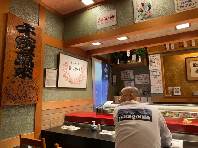 富山駅前にある高級回転寿司の有名店にかなり並んで食べるのなら、駅から離れたこちらの寿司屋の方が予約はできないが、カウンターで大将が握ってくれかなりのハイレベルとのクチコミなので、仕事を済ませて18:00過ぎに行くと、10席ほどのカウンタ−にすでに7名ほど座っており、夜の部の一巡目がスタートしてました。