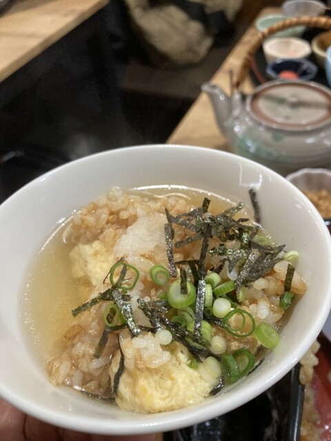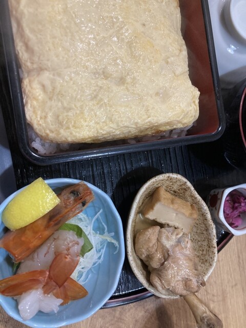 味噌汁と小鉢(この日は甘エビ刺身と手羽先煮)も付いてたら、、