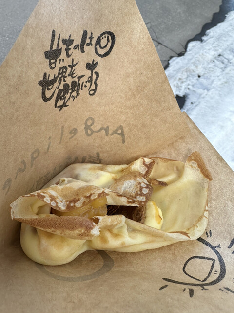 賞味期限30分を謳っているのは大袈裟だなと思っていましたが、食べてみてびっくり。今まで食べてきたクレープとは全く違う。まず柔らかい。そして柔らかいだけでなく口当たりもまろやか。さらに中に入っているパイ生地がアクセントになっています。これは食べてみる価値ありです。少し高いですけどね。