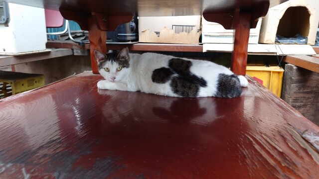 屋外にテーブルと椅子がありそこで食べる形になります。