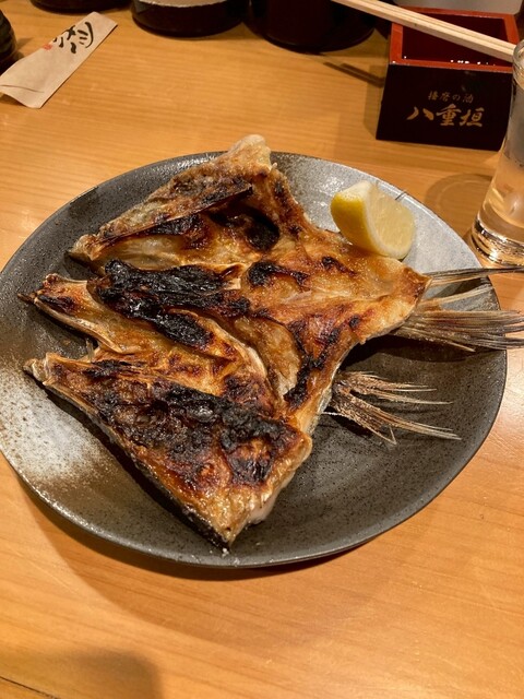 週末早く仕事が終わり正鮨にうかがいました。今日は、焼きでカマが出来ると聞いてお願いし、それに合うお酒から始めました。