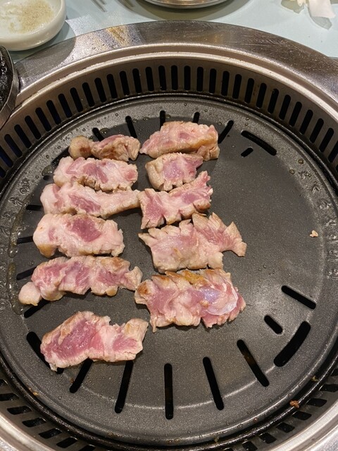 韓国ロッテホテル釜山近くのサムギョプサル専門店。現地の人も日本人も多かったです。前に6組待ちでしたが、20〜30分待ちで入店出来ました。ロッテの近くだからなのか、隣の人は中国語を話してました。