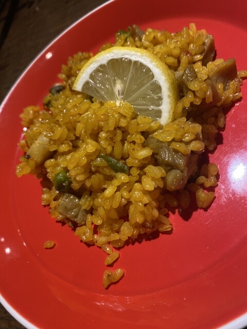 ミニパエリアもレモンを絞って、味、水分、旨味、酸味のバランス最高。