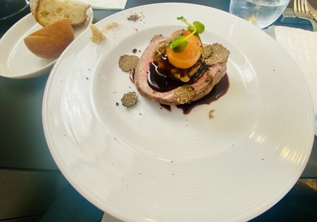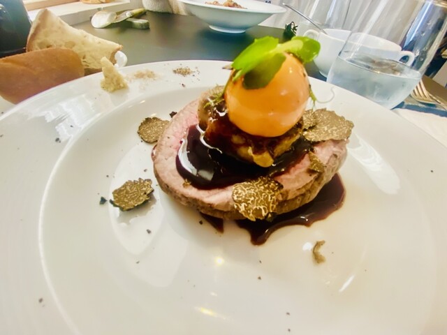 ローストビーフ自体美味しいし、のってたフォアグラはすごく美味しく感じました。削り立てのトリュフもフレッシュで美味しく、黄身はソースかわりに使うのは別の意味でフレッシュ、斬新ですねー