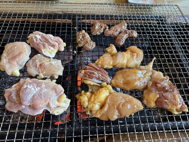 4名で伺ったので、焼きメニューは全品注文!まずはメインの地鶏のタレ焼きと地鶏の塩焼きからスタート。