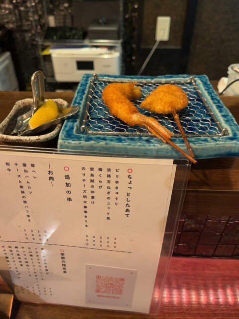 2本ずつ提供されて、おすすめのタレやタレ付きなど、色々な味付けで美味しかったです。