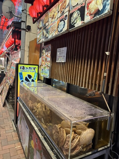 お店の外には水槽があり、カニやホタテがいました。2Fの暖簾で区切られた畳の掘りごたつの席に通され、前後のお客さんが気にならない席でした。