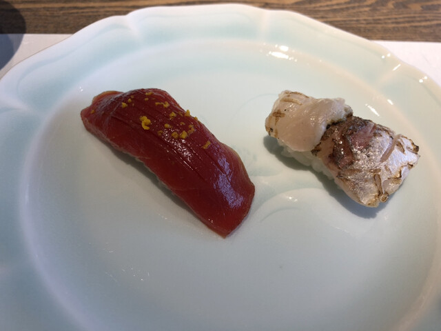趣がある店舗と、工夫を凝らした美しいお鮨と器。